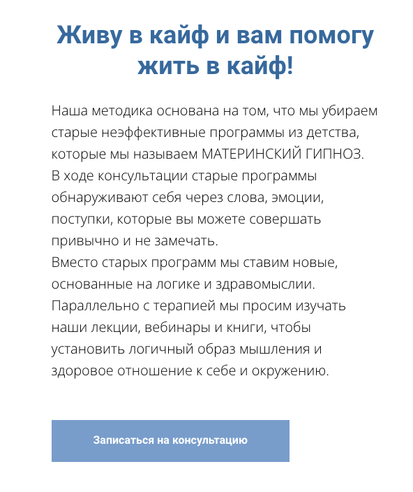 • нет доказательств, что консультации или информация из книг Марины кому-то помогли.
