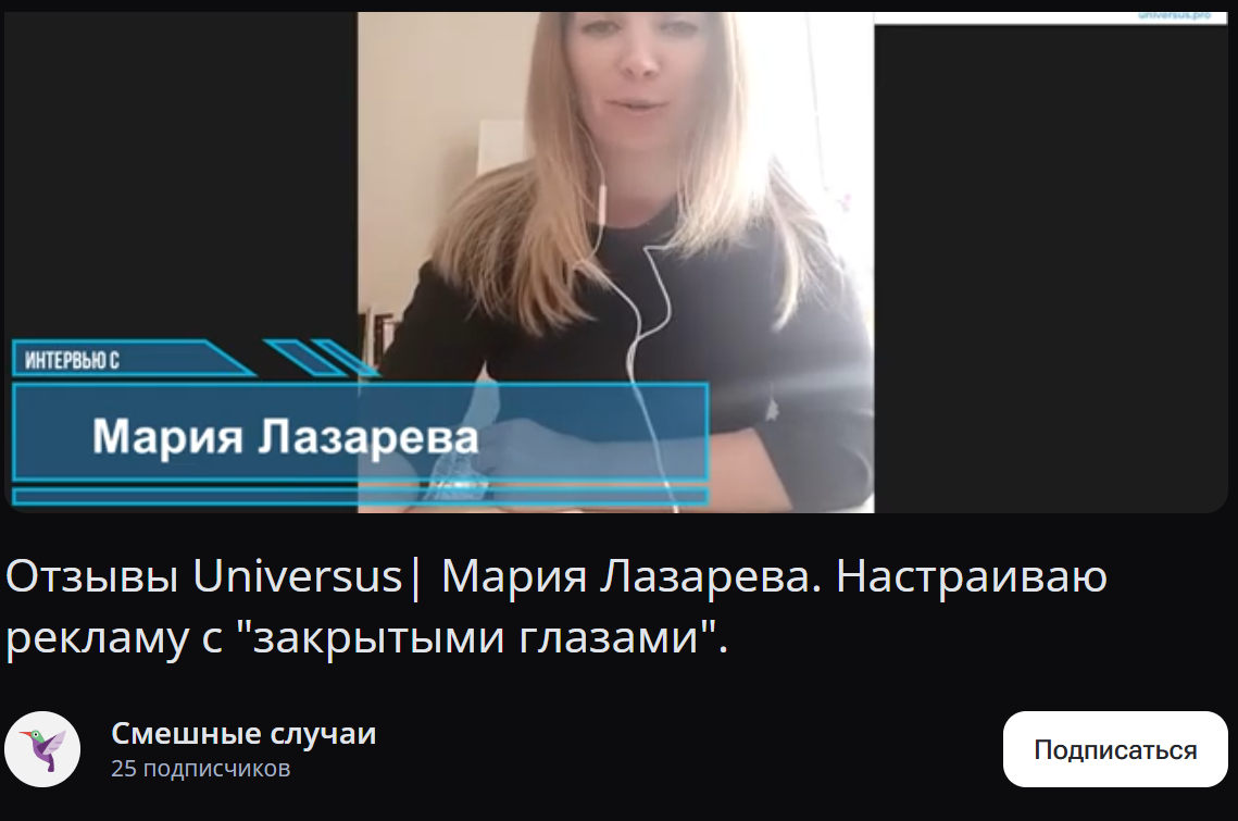 На канале «Рутуб» со смехотворно маленькой аудиторией в 25 подписчиков есть ролик, в котором мы видим лицо Марии. Однако она не ведет этот блог, а лишь дает интервью, в котором делится отзывом о своем обучении в «академии» Universus. Там она изучала профессию таргетолога. Ролик датирован 2024 годом, актуальность данных уже нулевая.
