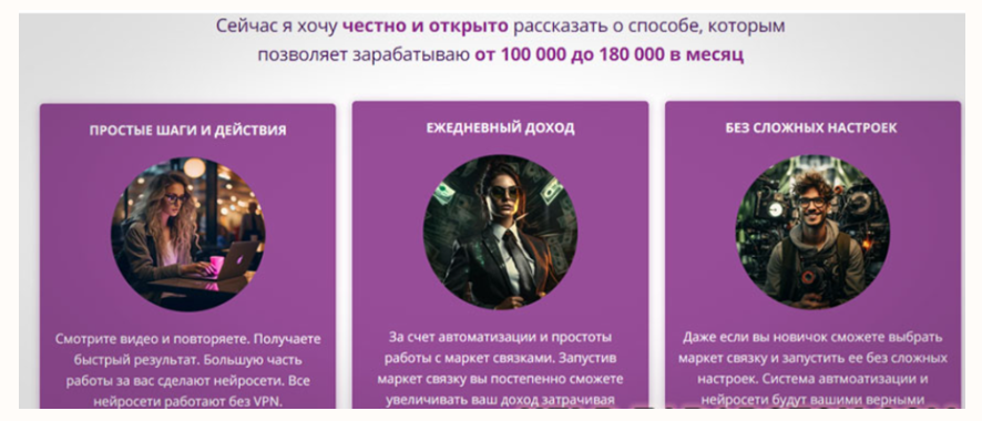 «Маркет Связка» – это курс с обещаниями дохода от 100 тысяч рублей в месяц. Идея простая: нейросети генерируют трафик, вы собираете «связки», а деньги якобы начисляются автоматически каждый день. Звучит привлекательно, но такие обещания требуют холодной головы.
