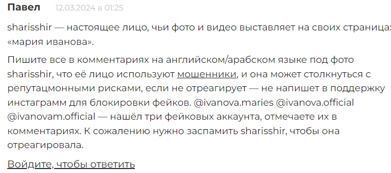 Некоторые пытаются связаться с блогером Sharis Shir по поводу фейков.