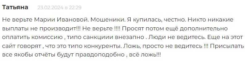 Ни одного хорошего отзыва ожидаемо нет, мошенники развели всех, кто пытался заработать с фейковой Марией.