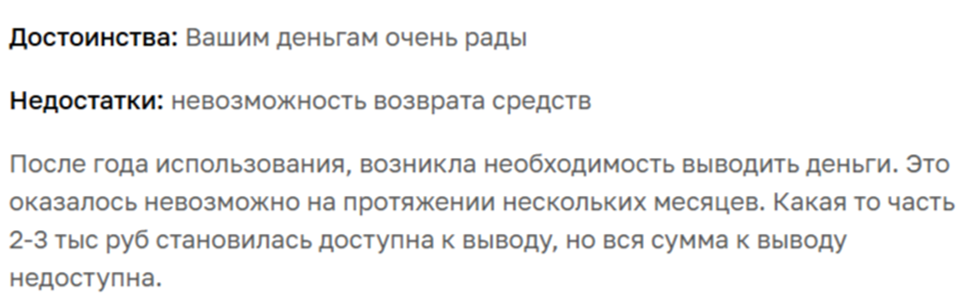 - невозможность вывода заработка;