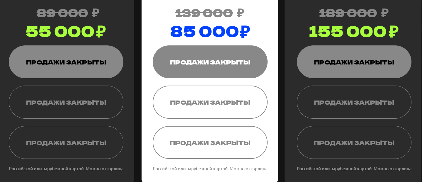 - курс стоит недешево: минимальный тариф обойдется в 55 тыс. рублей, а сюда даже не включены все модули;