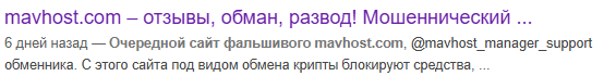 Независимых отзывов об обменнике Mavhost почти не найдено: ни на специализированных форумы, ни на самом сайте. Изредка могут появляться лишь предупреждающие заголовки о нечестности платформы.