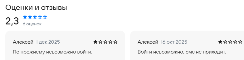 А на портале «Рустор» рейтинг приложения еще ниже.