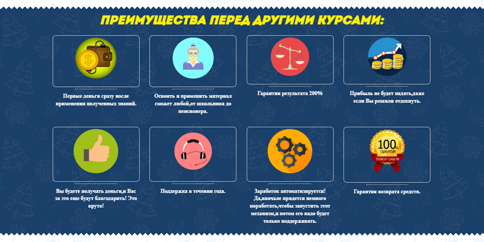 Приведенные на сайте Mechty Sbywautsya Ru преимущества явно рассчитаны на совсем уж доверчивых пользователей. Мол освоить материал сможет даже школьник, 200% результата и тому подобные. Вот только автор забыл уточнить, что любые принты покупать никто не будет, нужны реально уникальные и интересные изображения. Сделать их можно, но для этого нужен опыт и определенные навыки работы в графических редакторах, а также безусловно хорошее творческое воображение.