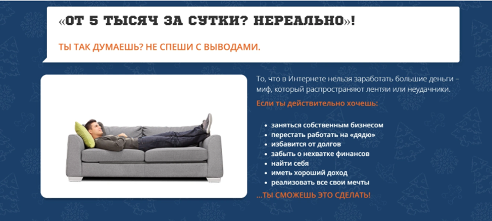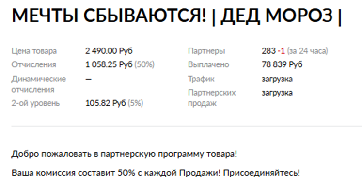 Для еще большей заинтересованности потенциальных покупателей на сайте Mechty Sbywautsya Ru была представлена партнерская программа для покупателей пакета «Дед Мороз». Автор курса был готов щедро поделиться половиной дохода от продажи на первом уровне и отдавать еще 5% со всех привлеченных этим рефералов доходов. Все накопленные средства обещали моментально вывести на Qiwi, ЮМани, Payeer, OKPay или банковскую карту.