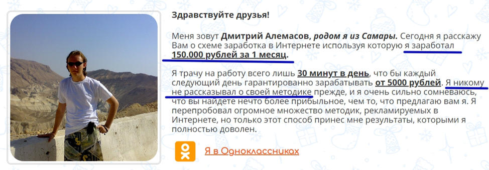 «Мечты Сбываются» – это курсы, автором которых выступает никому не известный Дмитрий Алемасов. Автор уверяет, что, тратя всего 30 минут в день, можно зарабатывать 150 тысяч рублей в месяц. Вложения якобы не требуются, достаточно зарегистрироваться на 4 сайтах, создать принт (рисунок для размещения на одежде или других вещах) с помощью специального софта, подгрузить его на соответствующие ресурсы и ждать поступлений. Ниже рассмотрим подробнее этот способ заработка и проанализируем перспективы.