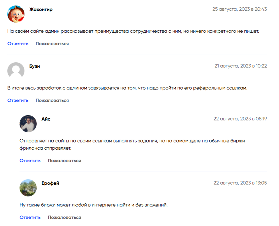 У себя на сайте Mechty Sbywautsya Ru автор разметил массу положительных отзывов, но свой оставить невозможно. Очевидно, что все это написано под заказ или самим владельцем ресурса. Реальные пользователи пишут, что подробной информации нет, обещанную помощь автор курса не оказывает, на письма по e-mail не отвечает. Отмечено, что слушателей отправляют на биржи фриланса, которые они могли найти и без такого «обучения».