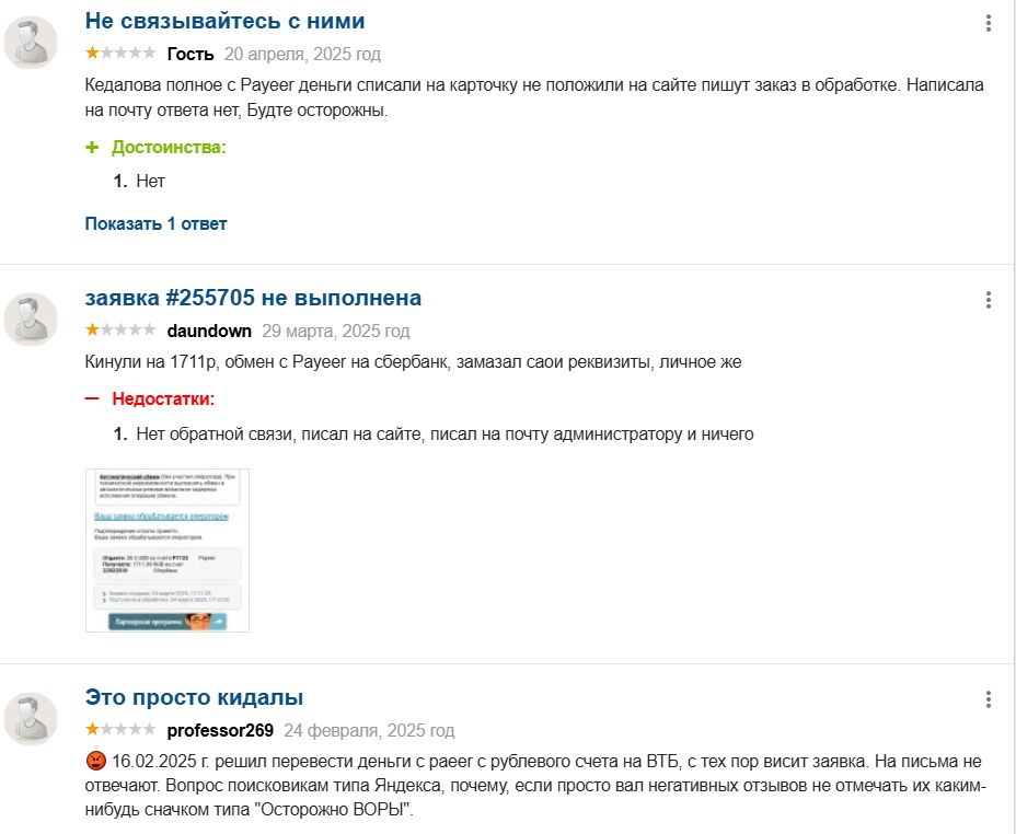 В отзывах за 2024-2025 гг. люди обвиняют сервис в мошенничестве и воровстве средств.