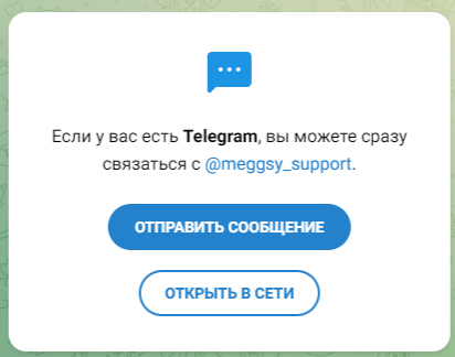 Все проблемы на сайте крипто-обменника решаются круглосуточной службой поддержки. Для связи с нею можно использовать только Телеграм meggsy support. Другие способы связи с саппортом отсутствуют, а в мессенджере менеджеры часто не отвечают клиентам.