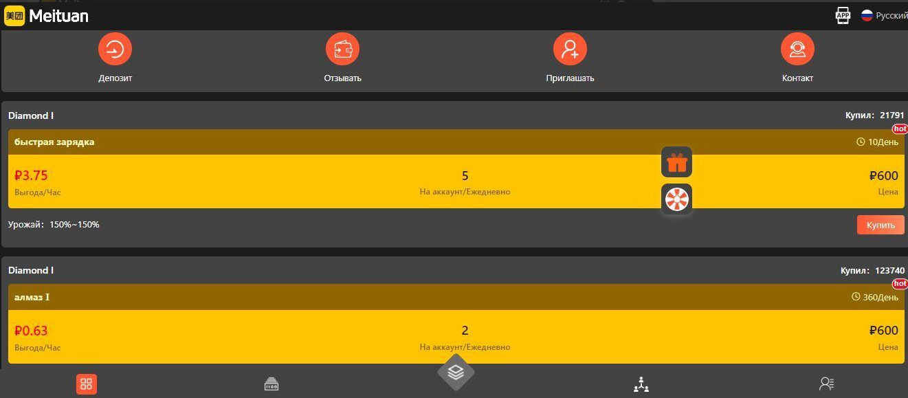 Если 50% к депозиту за 10 дней не кажутся для кого-то чем-то подозрительным, то есть и другие сомнительные факты в деятельности создателей это площадки. Например, сервис явно пытаются выдать за известную китайскую компанию Meituan. На сайте используют ее корпоративные цвета и даже есть логотип. Вот только в России организация не работает, да и специализируется на доставке, а не заработке в интернете.