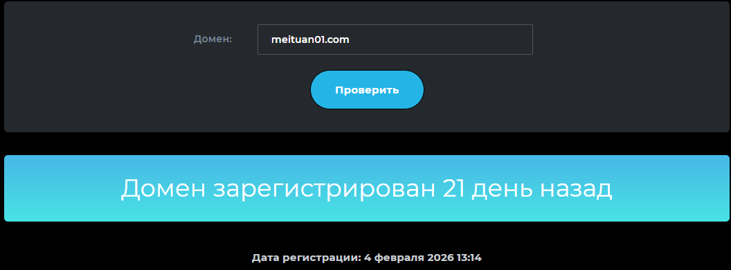 Очень молодой домен — тоже серьезный повод для недоверия. На момент написания обзора сервис существует всего 3 недели. Скорее всего, менее чем через месяц попасть на него уже будет невозможно: такие площадки пропадают очень быстро.