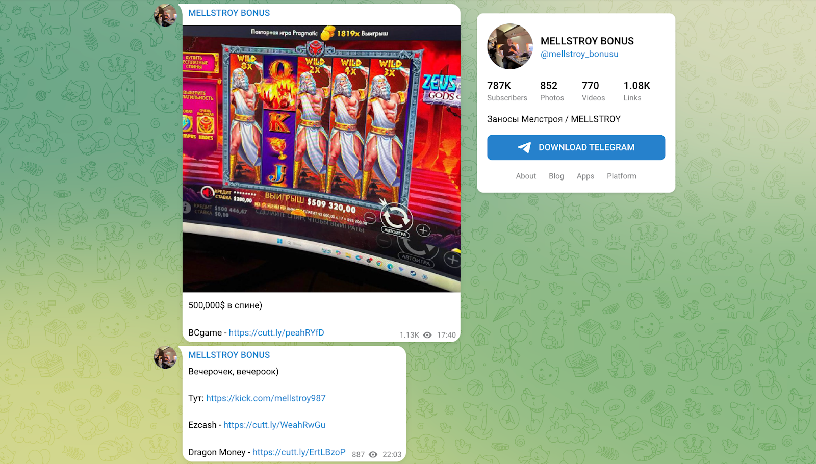 Обзор тгк Mellstroybonus: отзывы подписчиков, что предлагает Mellstroy в своем канале