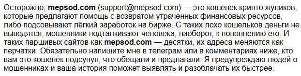 Пишите свои отзывы в комментариях, если уже стали жертвой аферы на Mepsod com.