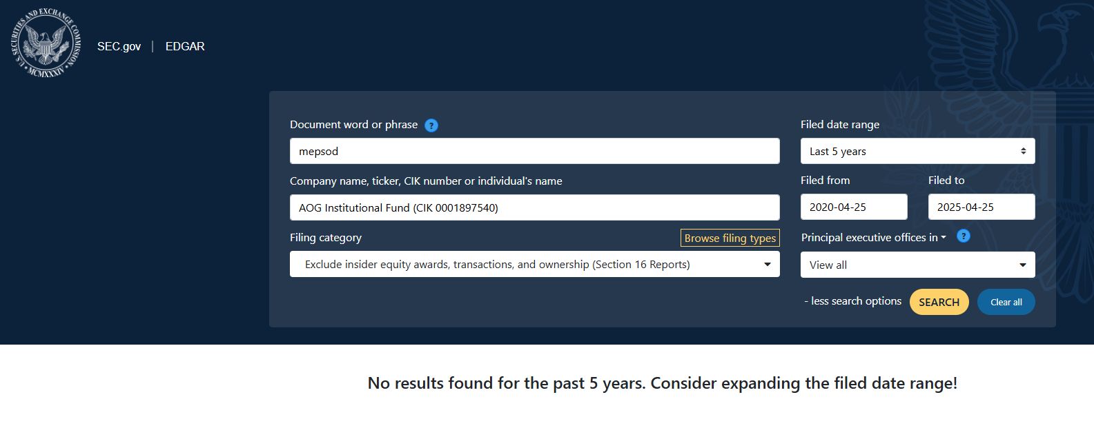 В подвале сайта мы видим, что Mepsod регулируется неким «Institutional Fund AOG», зарегистрированным под номером SEC CIK #0001897540.