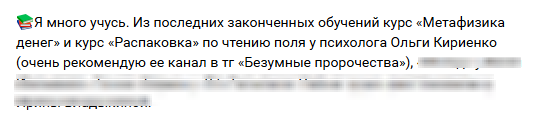 Мы не рекомендуем приобретать курс Ольги Кириенко, поскольку есть высокий риск получить противоречивую инфоцыганщину без конкретной пользы и при этом понести финансовые потери.