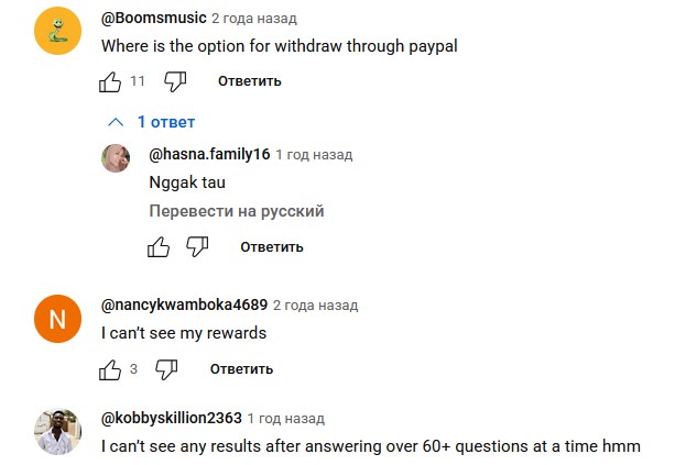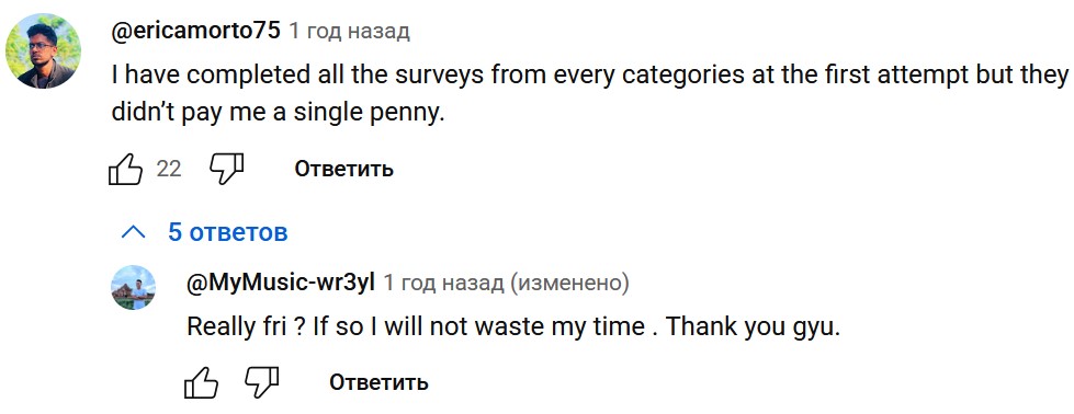 Есть несколько жалоб на то, что пользователи проходят опросы, а им не начисляют оплату.