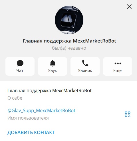 Для связи с разработчиками создан отдельный аккаунт поддержки @Glav_Supp_MexcMarketRoBot, который был недавно в сети. При этом разработчики никак не объясняют, почему существует несколько ботов с похожими названиями и какой из них является официальным.