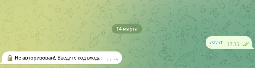 Только с самого начала начинаются проблемы. Чтобы просто зайти в бота, нужна авторизация, но как ее пройти — непонятно. Никаких инструкций или подсказок разработчики не оставили. Пользователь видит сообщение, что он не авторизован, и предложение ввести какой-то код. Вот только откуда его взять — загадка.