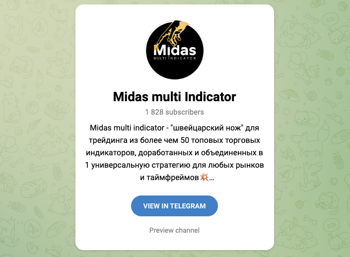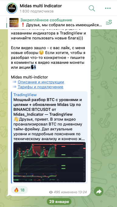 На телеграмм-канал Midas Multi Indicator, midas crypto indicator, на 7 февраля 2025-го года, подписано около 1,83 тысячи пользователей. Публикации просматривают в среднем по 500 раз.