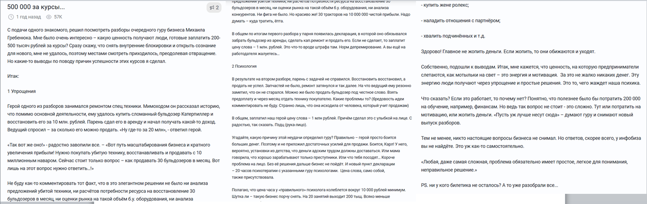 Что касается отрицательных отзывов о курсах Михаила Гребенюка, то их в сети мало, хотя на площадках есть неоднозначные отклики. О книгах автора «Отдел по захвату рынка» и «Гениальные скрипты продаж» встречается много похвал. Читатели пишут о толковых советах, практических рекомендациях и умных мыслях.