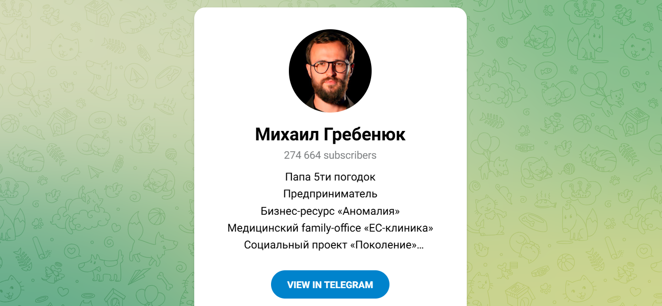 В телеграмм-канале автора под юзернеймом @GrebenukM 274 664 подписчиков. Паблик существует с 2018 года и на апрель 2026 года ему восемь лет. Основной контент на канале состоит из советов, кейсов учеников и мотивации. Курсы по продажам Михаила Гребенюка – это не проект с госгарантиями и официальным дипломом «на выходе», а авторский продукт.