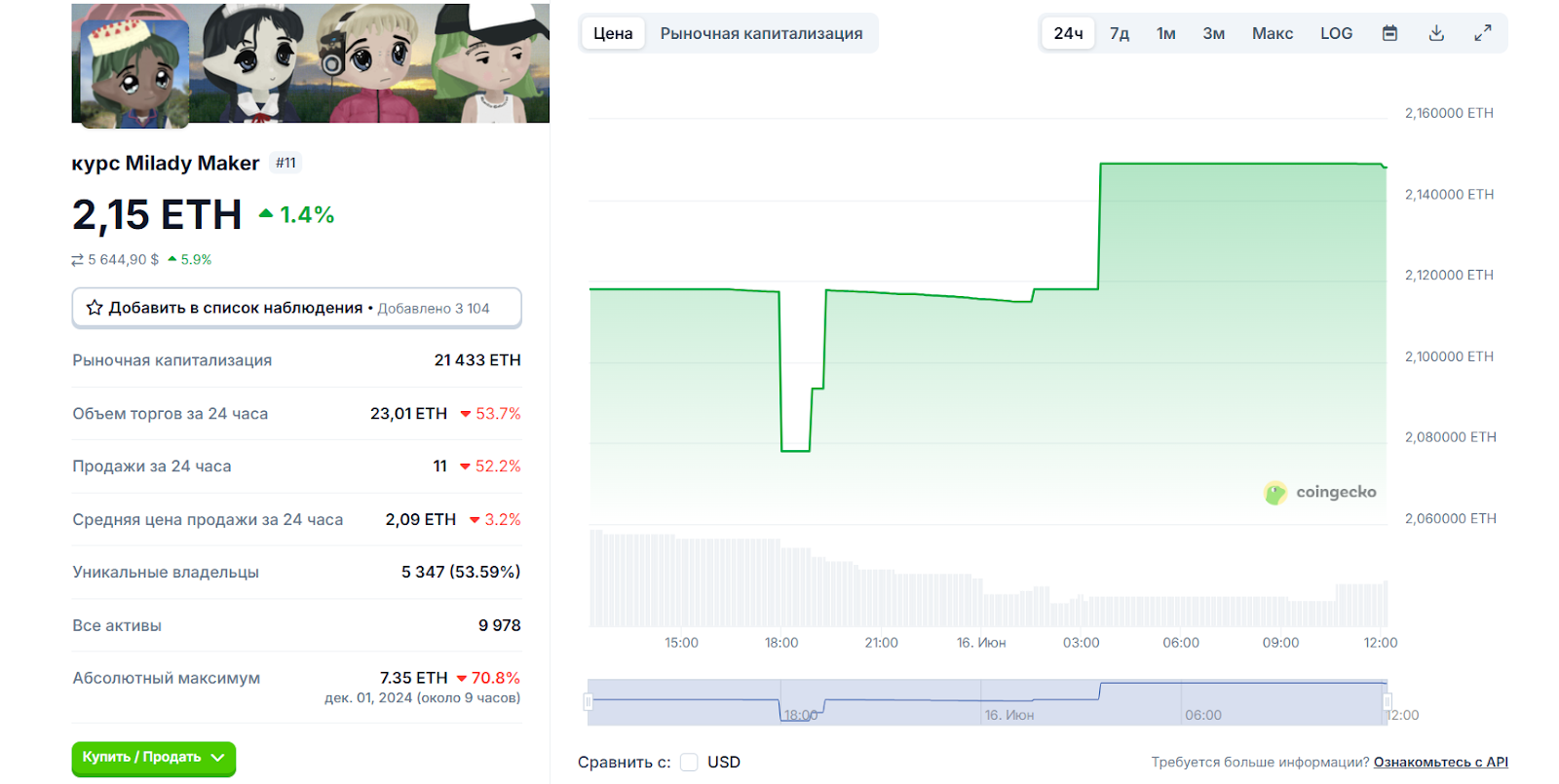 Краткий обзор коллекции Milady Maker NFT: рыночная статистика и отзывы покупателей о миледи нфт