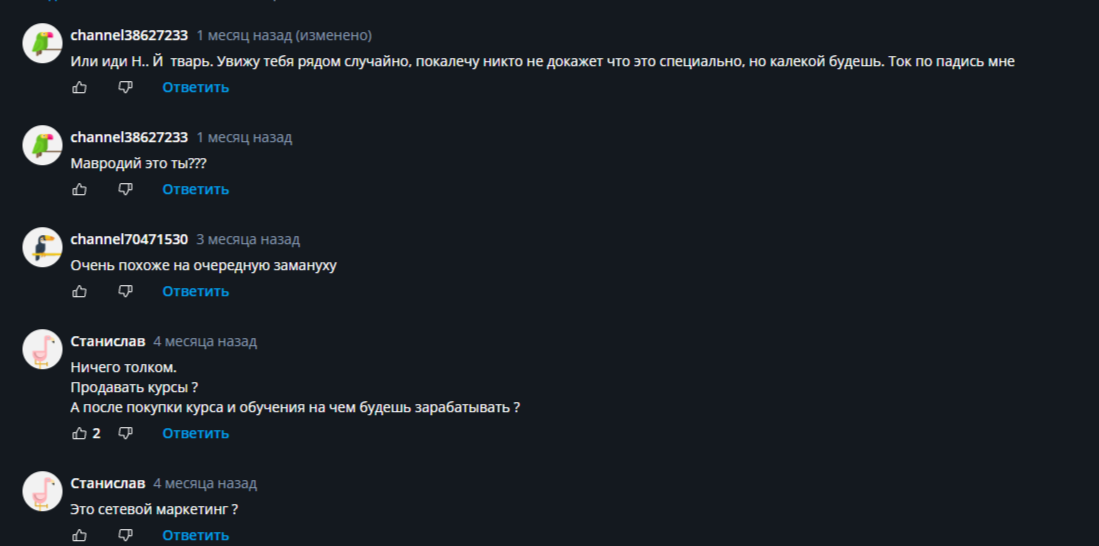 Все обнаруженные о создателях курсов комментарии в интернете написаны в негативном ключе. В отрицательных отзывах администрацию канала «Проект Миллион Го Бизнес в интернете» обвиняют в мошенничестве, причисляют к Мавроди. Сами же курсы пользователи считают водой и очередной заманухой.