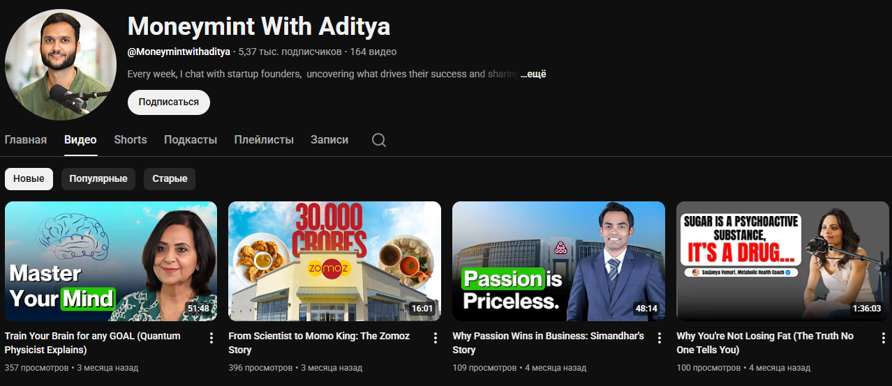 • на ютуб-канале MoneyMint With Aditya очень низкие просмотры, что не соответствует заявлениям о миллионах читателей;