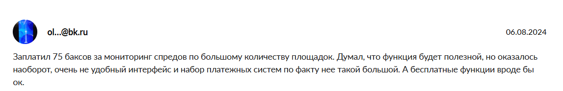 Они являются бесплатными. Но также Монетори предлагает конструктор связок, способный мониторить спреды в более 440 платежных системах. Пользование им стоит 75 долларов в месяц.