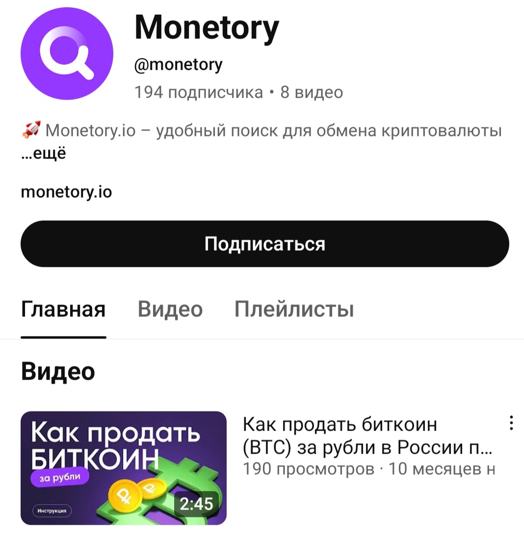 Также у агрегатора обменников есть страница в Инстаграм. Но у нее чуть больше 80 фолловеров и она развивается слабо. Канал на Ютуб имеет 194 подписчика. В нем выкладываются инструкции по покупке и продаже криптовалюты, пользованию сервисом. Выложено всего 8 видео.