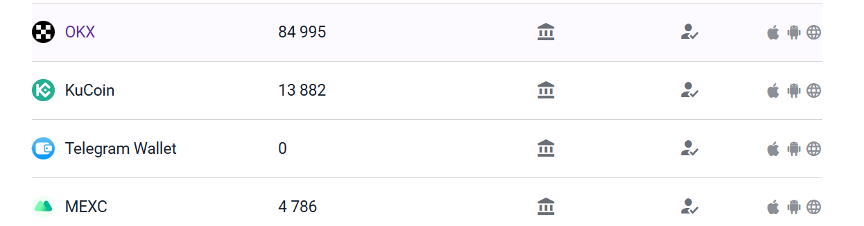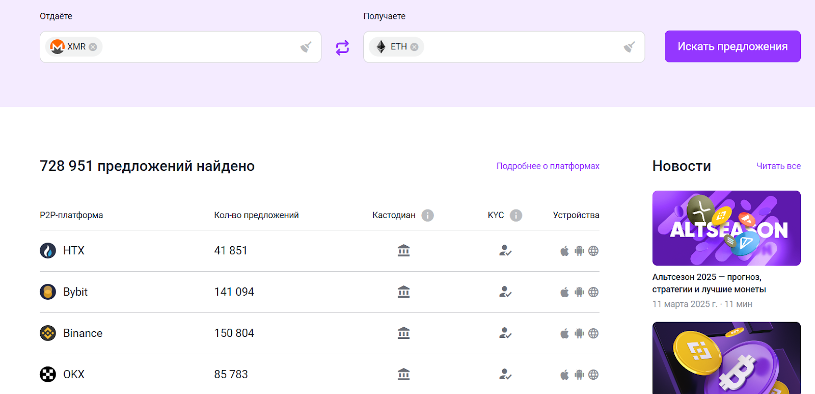 Агрегатор собирает данные со всех обменников, в том числе признанных скамом. Так, в выданном системой списке бирж оказались ОКХ, KuCoin и MEXC. Их пользователи часто жалуются на потерю денег. Это значит, что разработчиков особо не волнует то, успешно ли их клиенты смогут обменять криптовалюту.