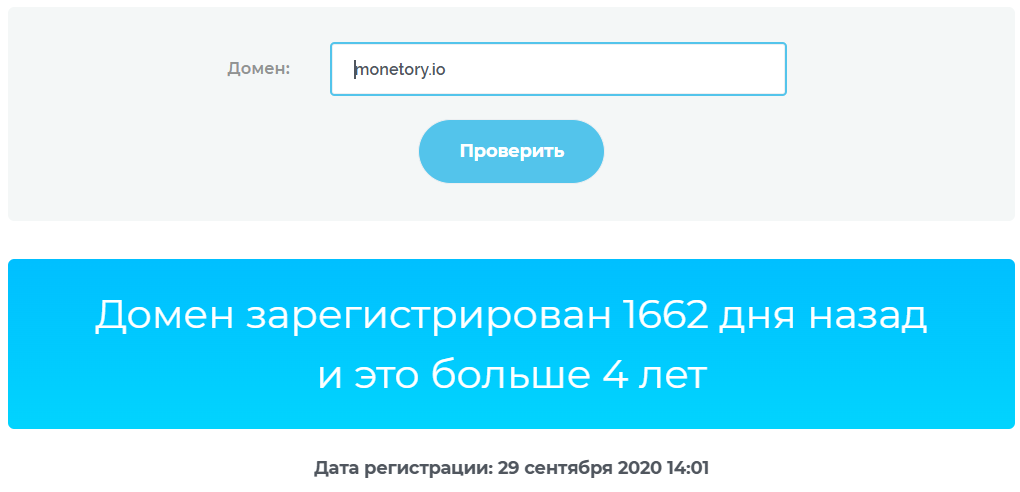 На сайте монетори io не было найдено юридической информации о сервисе. Неизвестно, кто его создал и когда. Но проверка показала, что домен веб-ресурса был зарегистрирован еще в 2020 году.