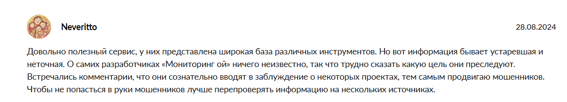 Но большинство предостерегает не пользоваться Monetory. Этот агрегатор обвиняют в продвижении скам-обменников. Также отмечают его нелегальную работу и отсутствие какой-либо информации о разработчиках. У большинства этот сервис не вызывает доверия. Отзывы, подтверждающие это, приведены ниже: