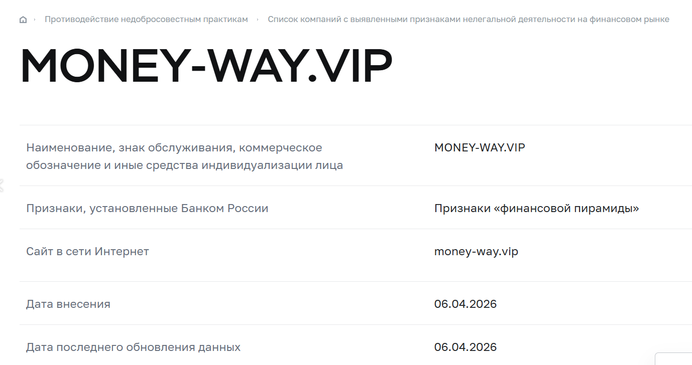 Поиск лицензий, имен реальных руководителей и юридических данных ни к чему не привел. Проект обнаружился в реестре Центрального Банка РФ, вот только не как лицензированная компания, а как вероятная пирамида.