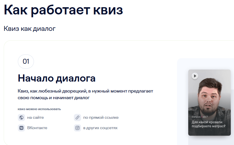 Работа marquiz me основана на принципе интерактивного диалога. Потенциальный клиент проходит квиз, последовательно отвечая на вопросы. Система формирует персональные рекомендации, собирает контакты или рассчитывает стоимость услуги.