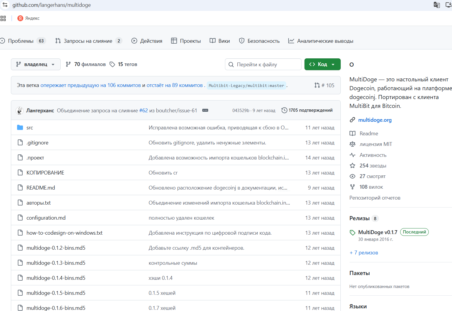 Софт строится на основе Dogecoinj – библиотеке, которая связана с блокчейном. Код, как мы уже говорили, открытый, но последнее обновление программы вышло еще в 2016 году. Версия 0.17 – последняя – больше продукт обновляться не будет. Устаревшее ПО – вот главная причина, почему у клиентов возникают проблемы. В 2014-2015 году кошелек был новым, современным поэтому удостоился множества положительных отзывов.