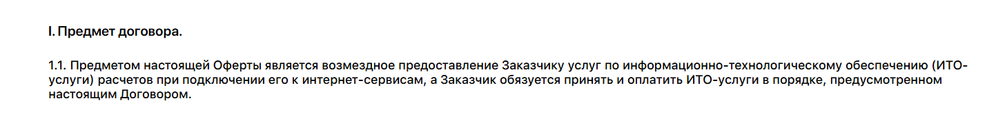- в договорах оферты часть услуг описана как ИТО-сопровождение расчетов, а не как классический перевод средств;