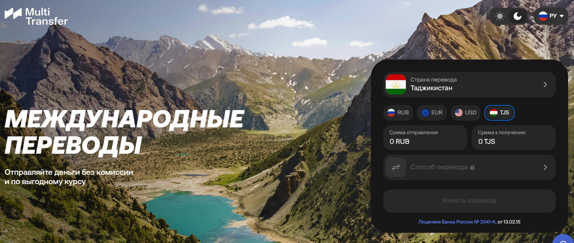 На главной странице сайта Мультитрансфер Ру заявлены международные переводы, однако без включенного JavaScript страница фактически не раскрывает ни полноценный интерфейс, ни договорную обвязку сервиса.