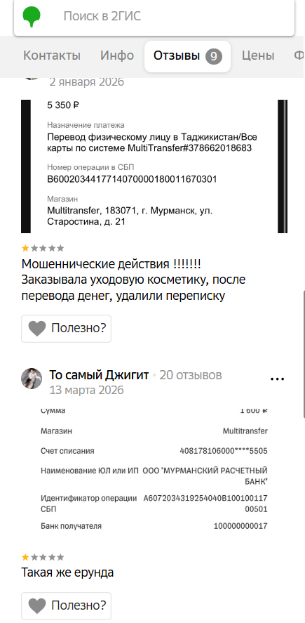 На одном из сайтов в карточке «Мурманский расчетный банк» присутствуют 9 отзывов о Https Multitransfer Ru с жалобами. Негатив направлен на сотрудников сервиса, удаляющих переписку с клиентом, и фиктивный перевод средств.
