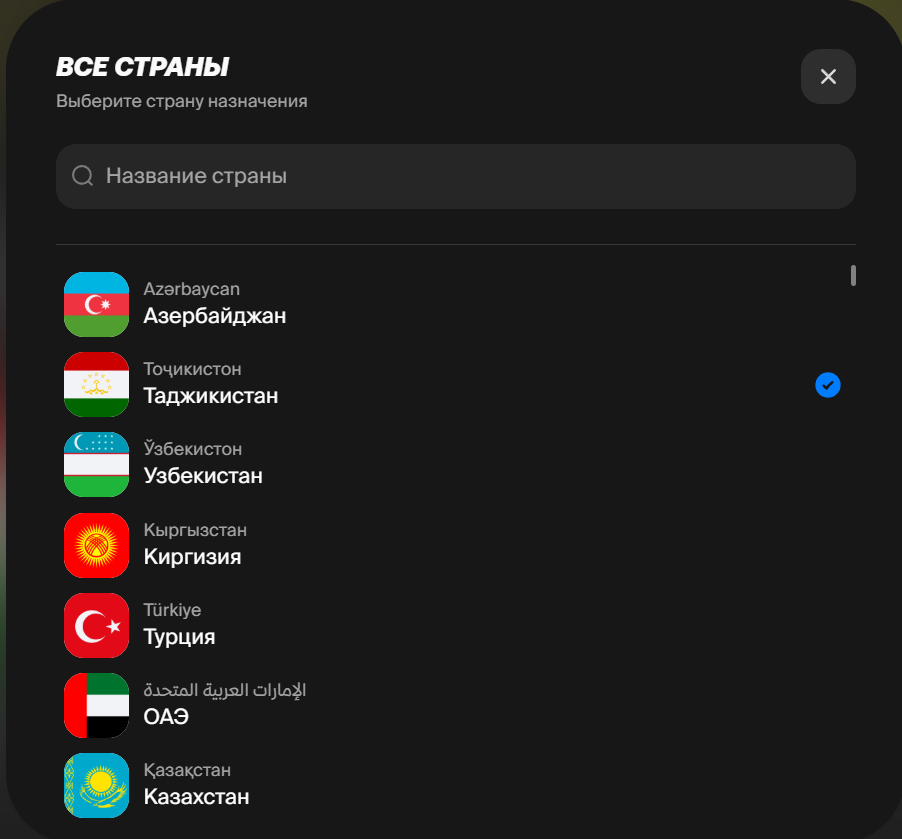На странице платформы указано, что доступны переводы в рублях, долларах, евро и национальных валютах, а география включает Таиланд, Китай, ОАЭ, Португалию, Узбекистан, Сербию, Казахстан, Маврикий, Германию, Таджикистан, Италию, Францию, Латвию, Кыргызстан, Беларусь, Швейцарию, Израиль, Индонезию, Грузию, Бельгию и другие страны Европы и СНГ. Там же зафиксированы лимиты: 800 000 ₽ в сутки и 1 000 000 ₽ в месяц.