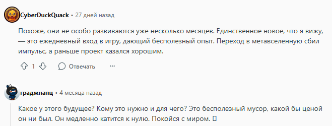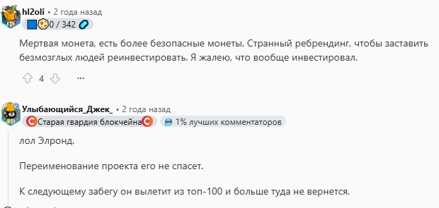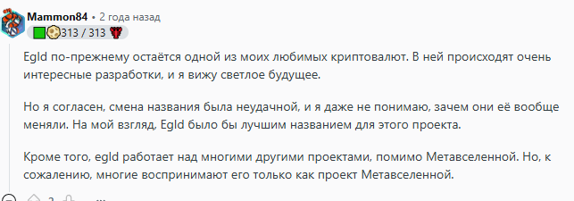 Сообщество расколото. Большинство инвесторов разочарованы. Называют проект мертвым или обвиняют Multiversx в скаме. Жалуются на отсутствие развития. Последние месяцы принесли только разочарования.