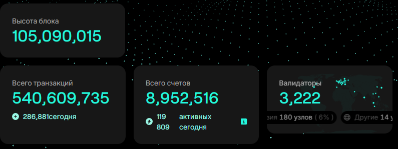 Стейкинг показывает интересную картину. 66% токенов заблокировано. Это 17.51 миллиона монет. Доходность 6.26% годовых.