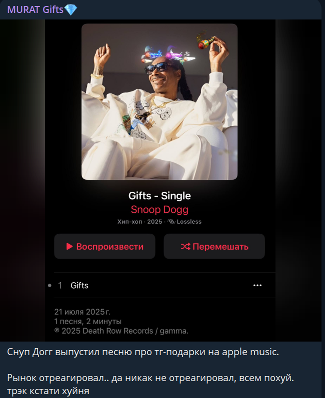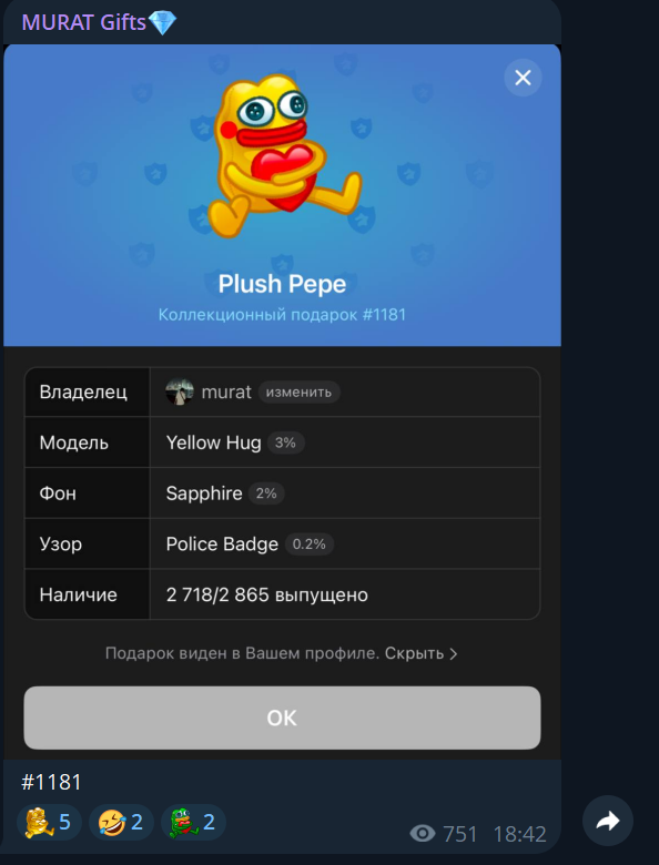 Следует отметить, что Ashoo pay в разные периоды своего существования уже менял стиль публикаций. Они были как исключительно посвященные перечислению характеристик NFT, так и постами с личной жизнью автора канала. Также можно отметить большие перерывы между некоторыми этапами публикаций. Это может говорить о смене владельцев канала.Обзор социальных сетей Murat gifts