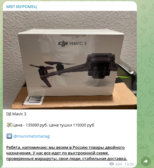 Например, на канале «МВТ Муромец» можно найти дрон DJI Mavic 3, за который в настоящих магазинах просят около ₽280,000, цена будет сильно зависеть от поставщика и комплектации. При этом она ни при каких условиях не падает до ₽135,000, за которые товар предлагает купить Илья – это может быть признаком скама, так как разница слишком большая.