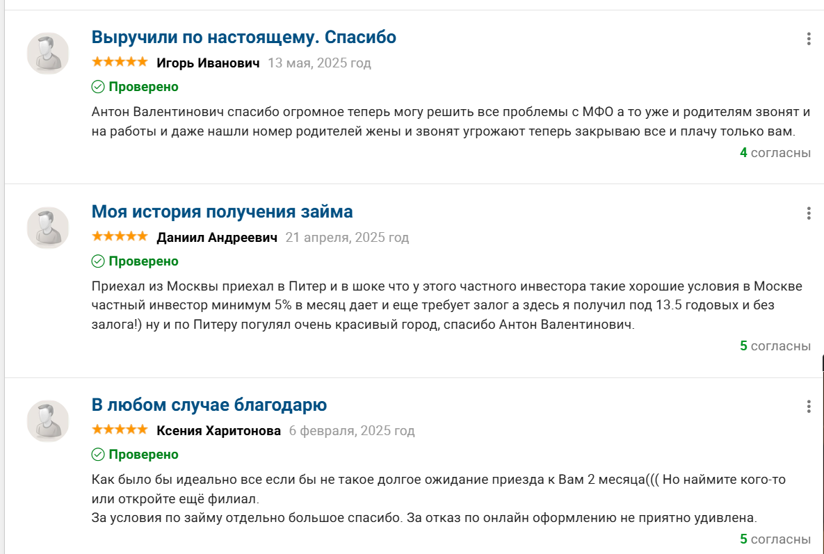 Мурзин Антон Валентинович: отзывы реальных клиентов о займах