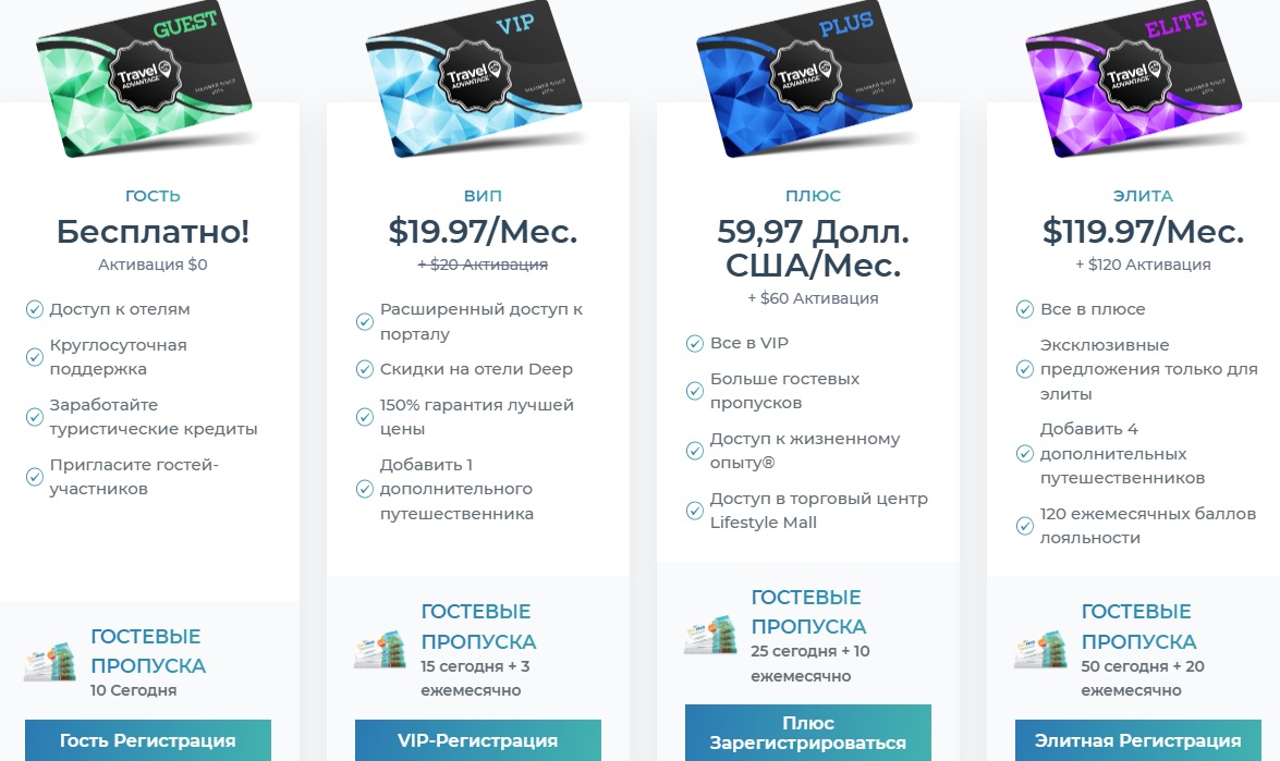 Точное определение деятельности компании дать очень сложно. Судя по предоставленной информации, основным направлением является МЛМ-бизнес, дающий возможность заработать не только сотрудникам, но и новым клиентам. Также фирма обещает всем, кто будет исправно делать ежемесячные взносы, скидки и бонусы на путешествия.Для того, чтобы начать сотрудничество с компанией, необходимо выбрать один из четырех тарифных планов. Они отличаются суммой ежемесячного платежа и некоторыми дополнительными преимуществами:
