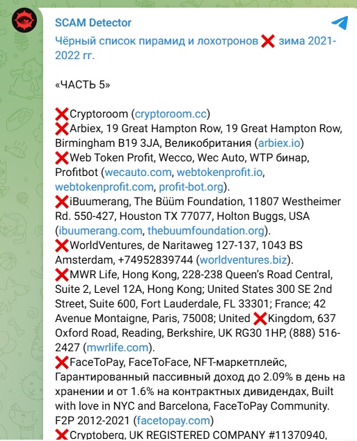 Проверка компании на законность показала, что организация не фигурирует ни в одном официальном реестре. Более того, фирма была замечена в некоторых «черных списках». Так MWRLife была обнаружена в одном известном телеграм-канале, занимающемся разоблачением инфоцыган, финансовых пирамид и других мошеннических проектов.