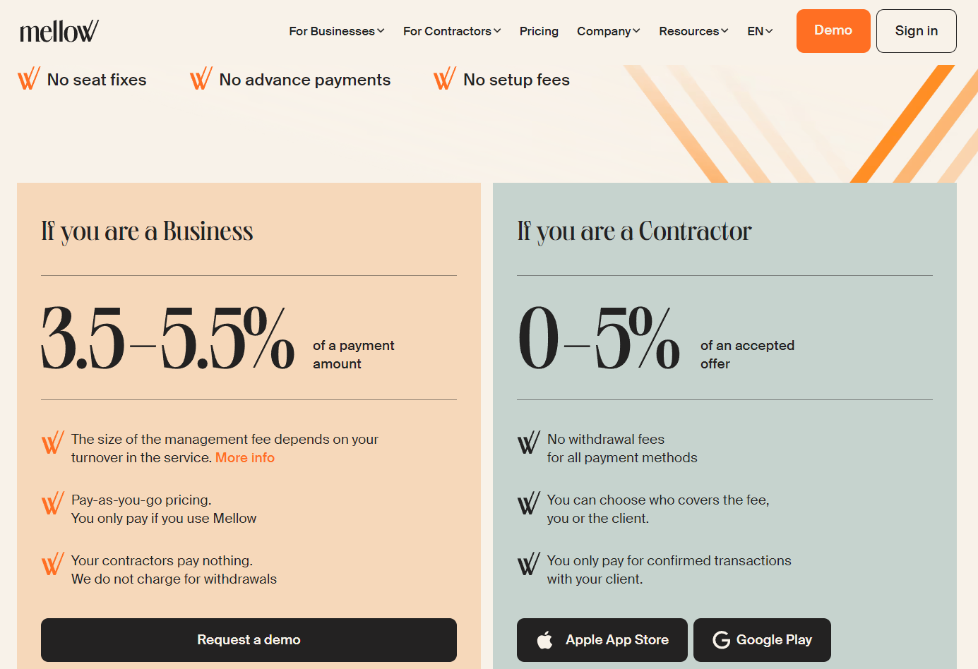 Для сотрудничества существует 2 тарифа, который изменяется в зависимости от вашей роли. Компании обязаны выплачивать 3.5-5.5% от стоимости заказа, а фрилансер 0-5%. Само значение зависит от оборота автора / заказчика. Никаких дополнительных платежей, по словам разработчиков, вносить не нужно.